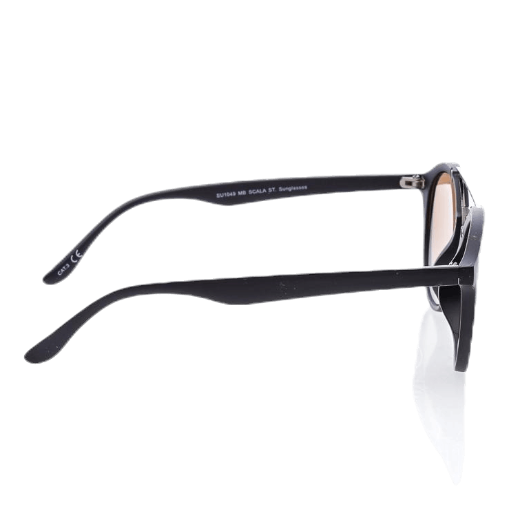 Abgerundete Sonnenbrille mit Kunststoffrahmen und Doppelsteg aus Metall. Größe: Einheitsgröße. CE-Kennzeichnung.