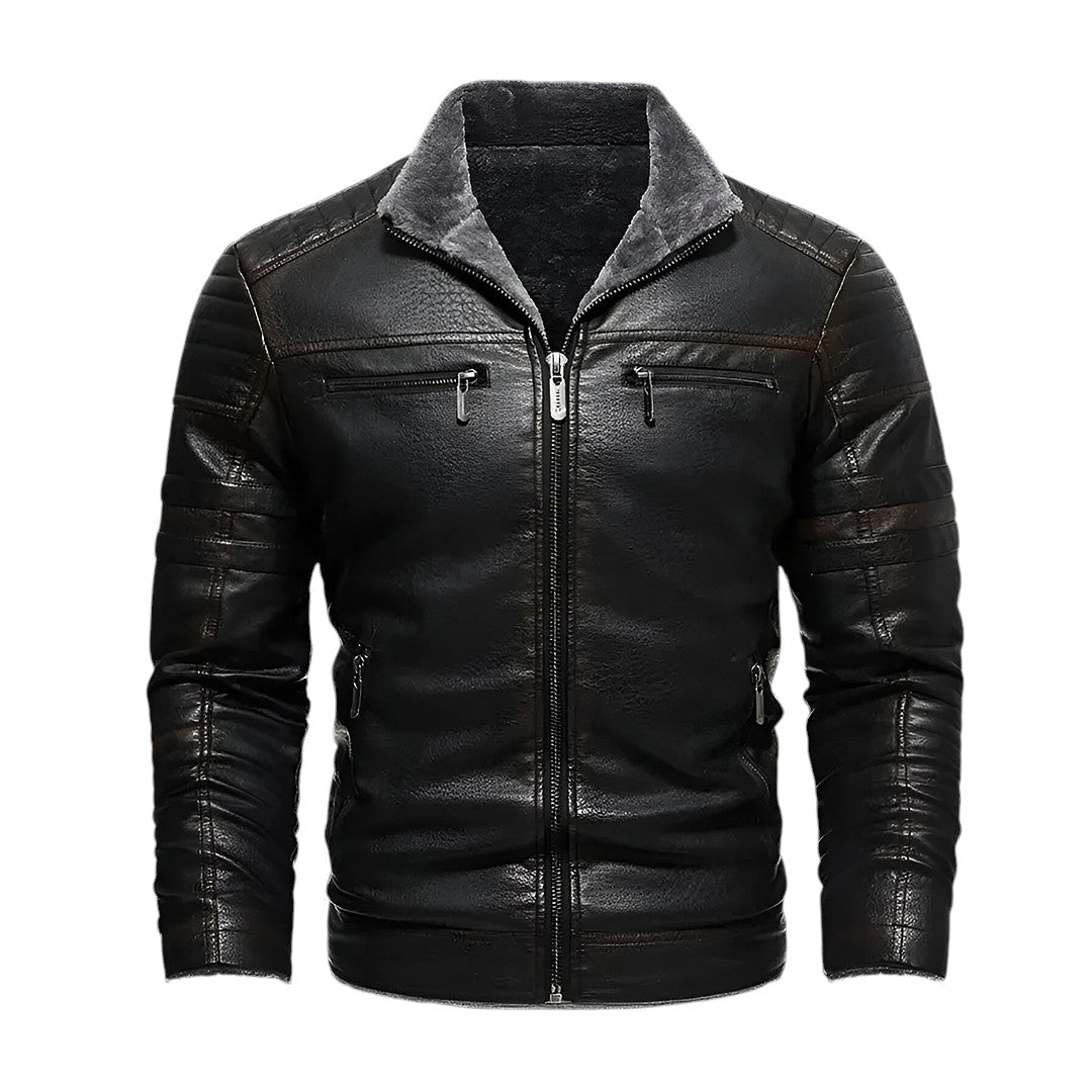 Stay warm and stylish with the Benjamin Sherpa Men Leather Jacket. It features a cozy sherpa lining and a durable leather exterior. This jacket is perfect for chilly days and adds rugged style and comfort to any look. Embrace the cold with this Benjamin Sherpa leather jacket.